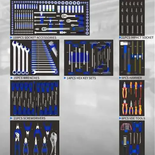 11 lades – waarvan 9 volledig gevuld met professioneel gereedschap (269-delig)